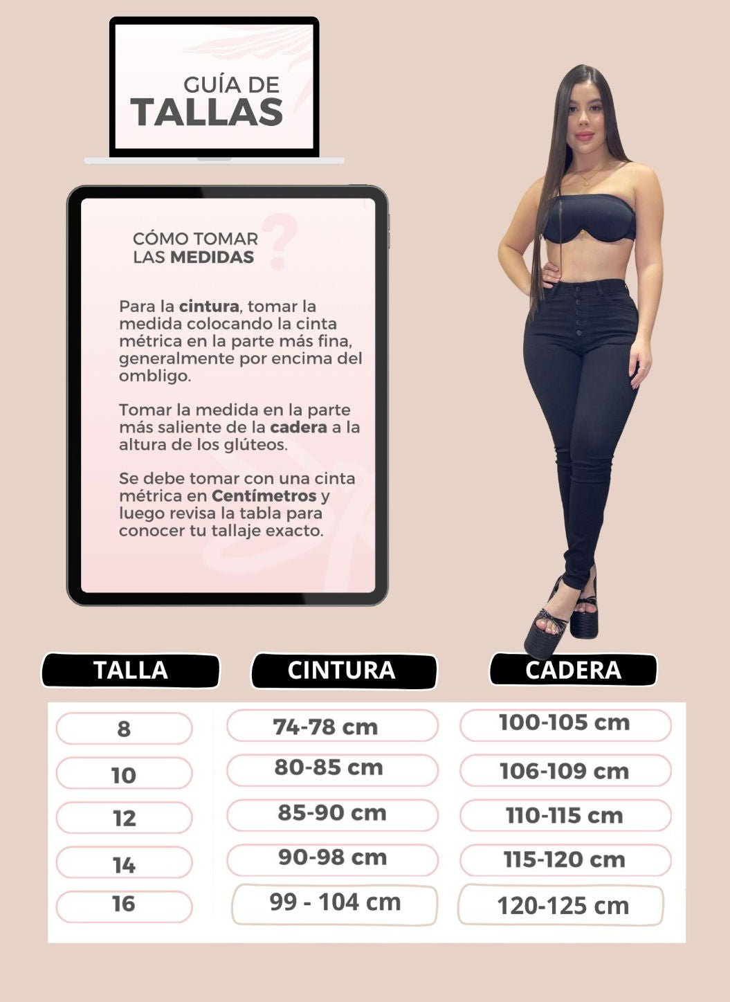 👖 Es una horma ajustada tipo skinny, que se adapta desde la cintura hasta los tobillos.